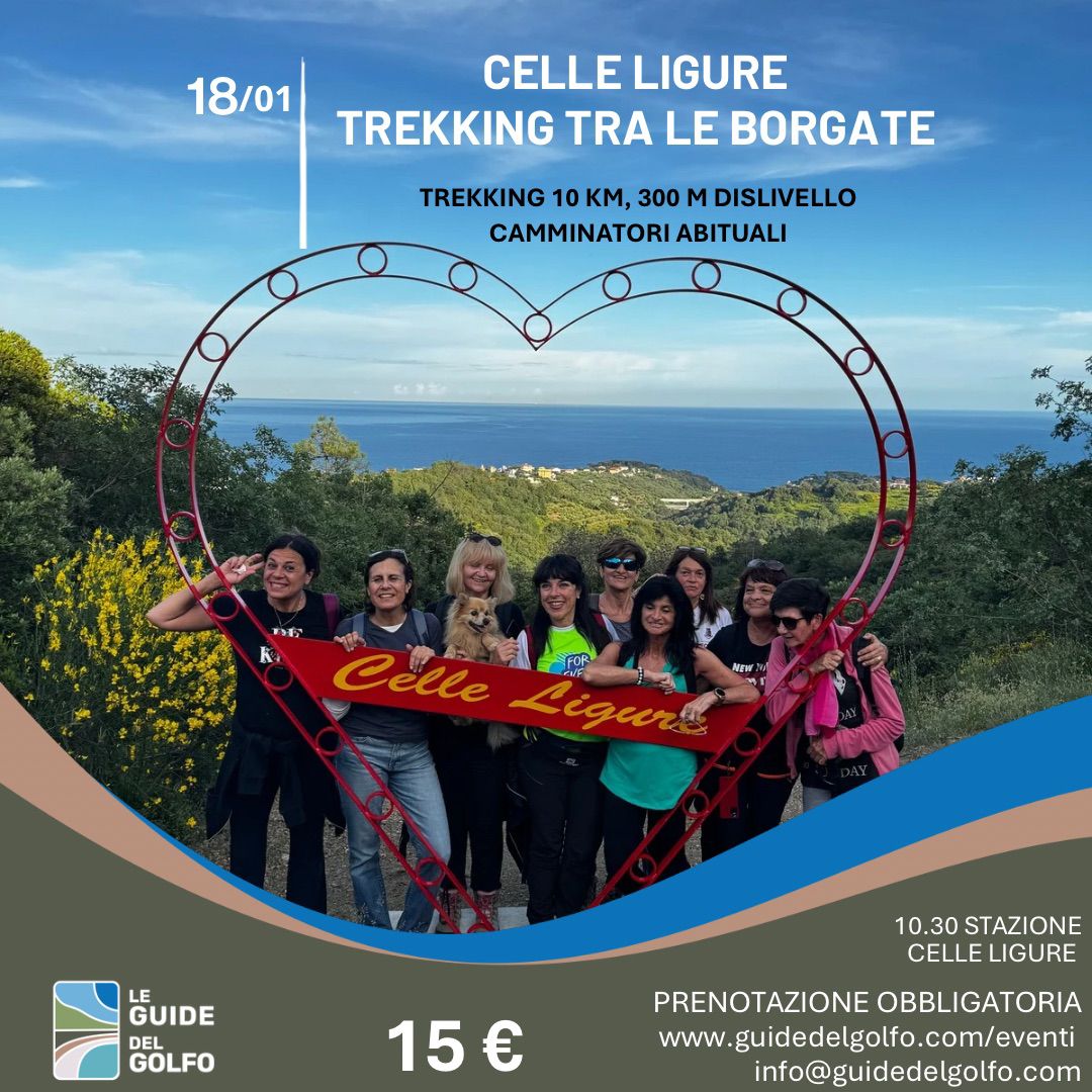Scopriremo gli angoli più caratteristici del territorio con scorci meravigliosi sul mare e sulle montagne circostanti. Le terrazze, sorrette dai muretti a secco, fanno da cornice a Celle Ligure, composta da diverse frazioni, ognuna con la propria storia e tradizioni. Le chiese e le cappelle sono sempre state non solo un luogo di culto, ma un punto di aggregazione e scambio per queste comunità, che da secoli abitano in questi luoghi impervi. Raggiungerle percorrendo gli antichi sentieri e le antiche mulattiere è una grande emozione, che ci permette di capire come la Liguria, fatta essenzialmente di pietra, si trasformi in pochi metri da domestica a selvaggia, regalandoci un’atmosfera unica che nei secoli ha alimentato storie e leggende.